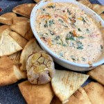 - Bake for 30 minutes and then carefully take dip out of the oven. While cooking, prep Pita Chips.