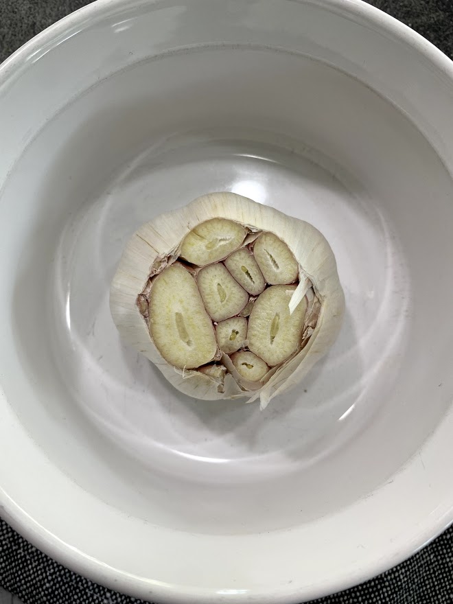 - Once garlic is done, remove, let cool.