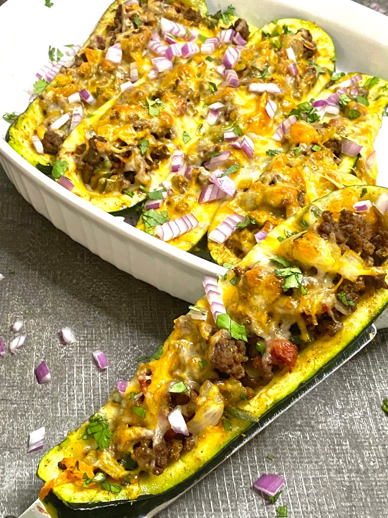 Who doesn’t love tacos?? These are a great healthy and keto alternative to normal tacos. Taco mix served in a zucchini boat cooked to perfection.