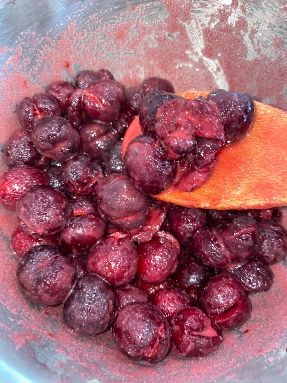 - Mix it up! Mix cornstarch, cherries, lemon juice and sugar together in a bowl and then put half the batch on each pie crust in the middle.