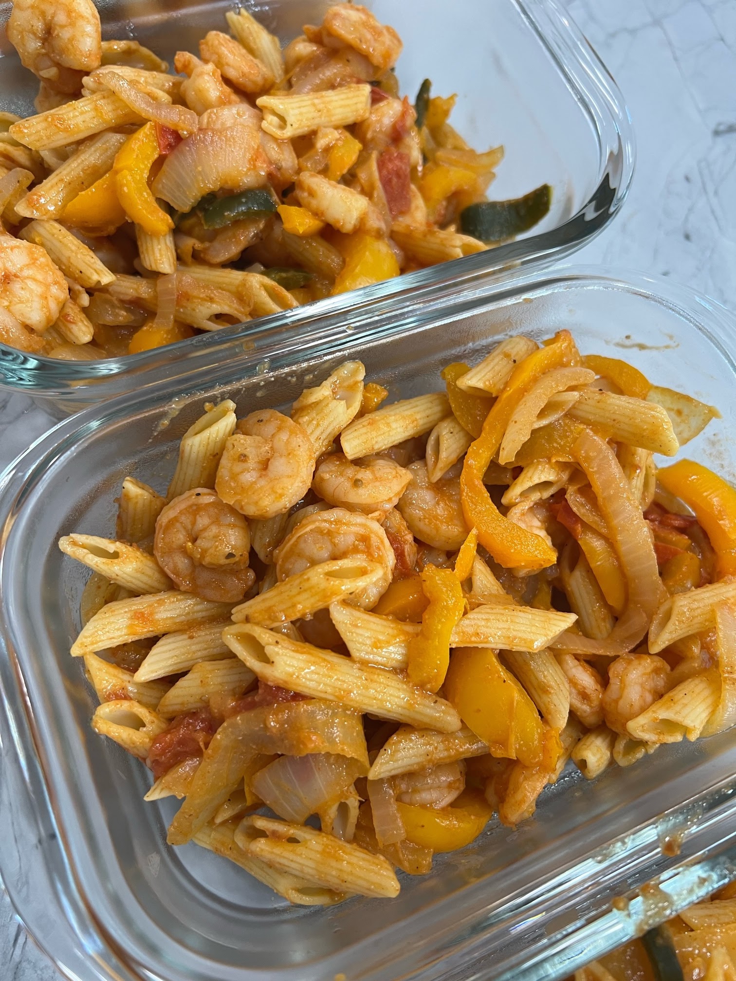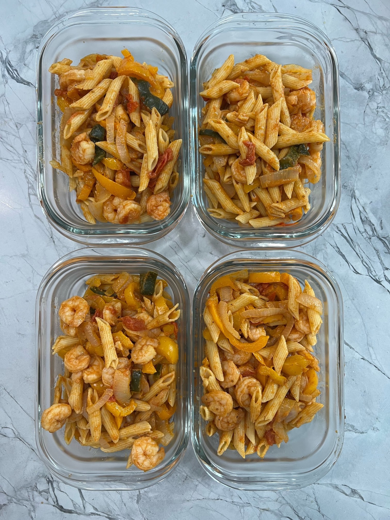 - Drain cooked pasta and add pasta to the pot with veggies and shrimp. Stir and serve or save for your lunch tomorrow!